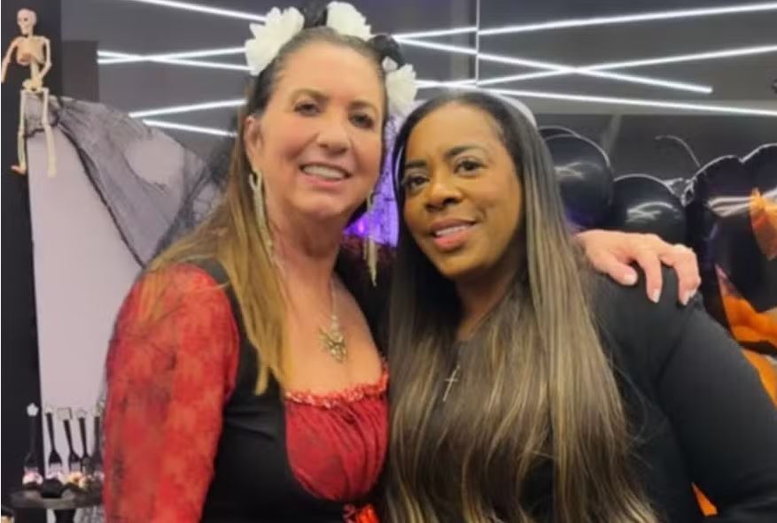 Margareth, mãe de Virginia posa ao lado da mãe de Vini Jr. em festa